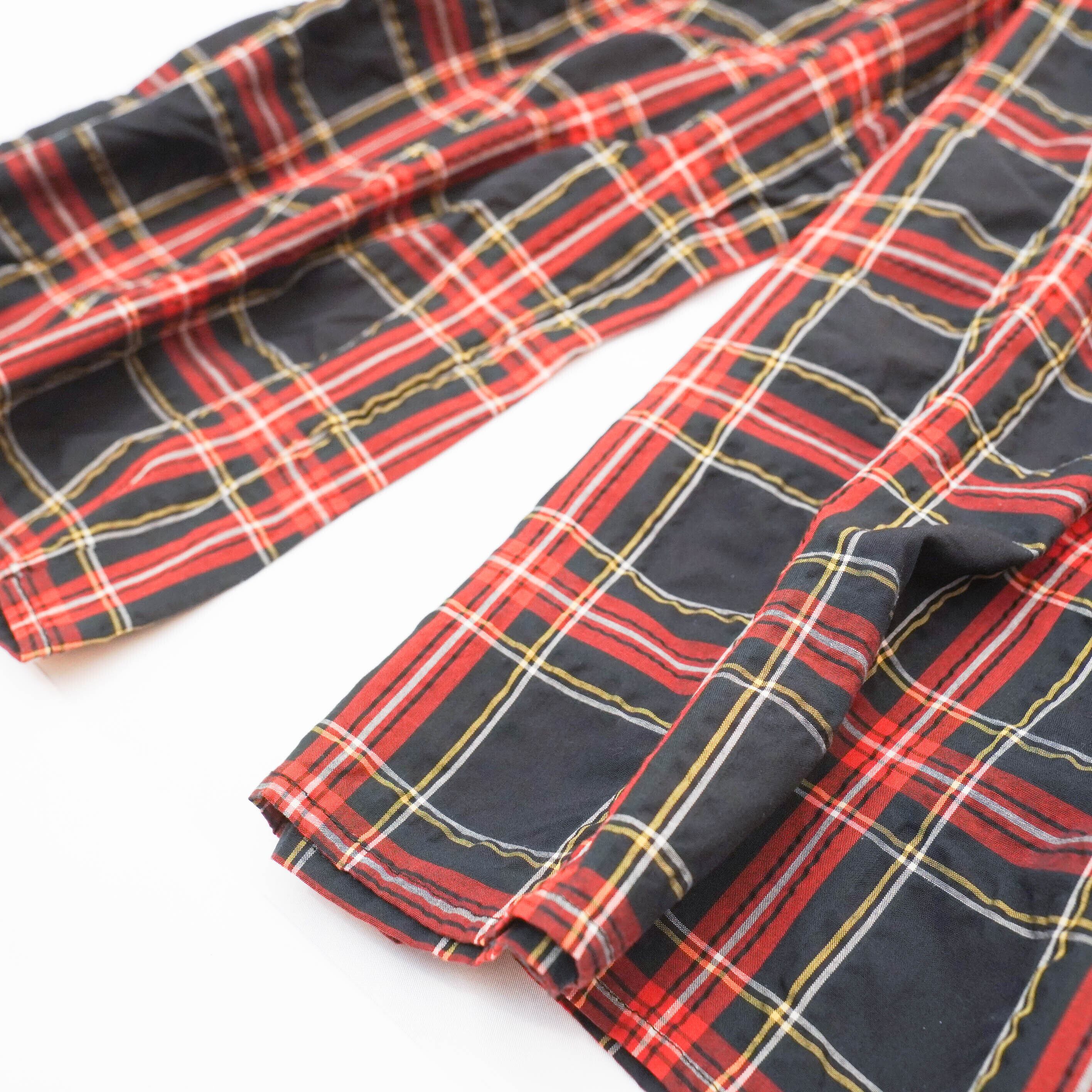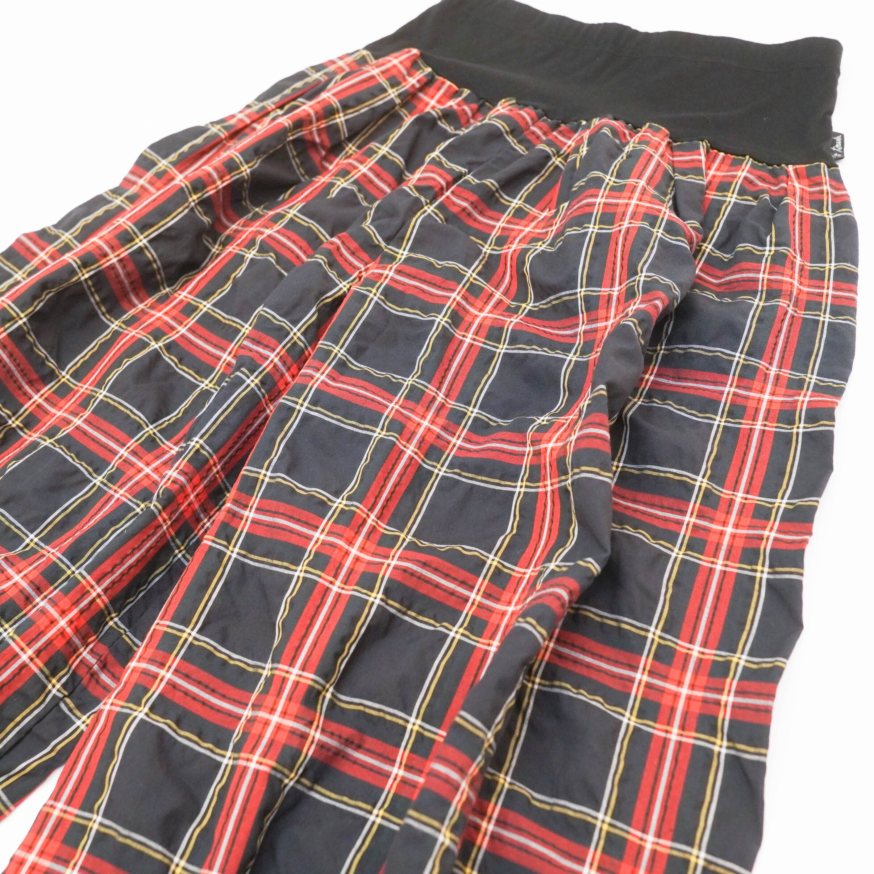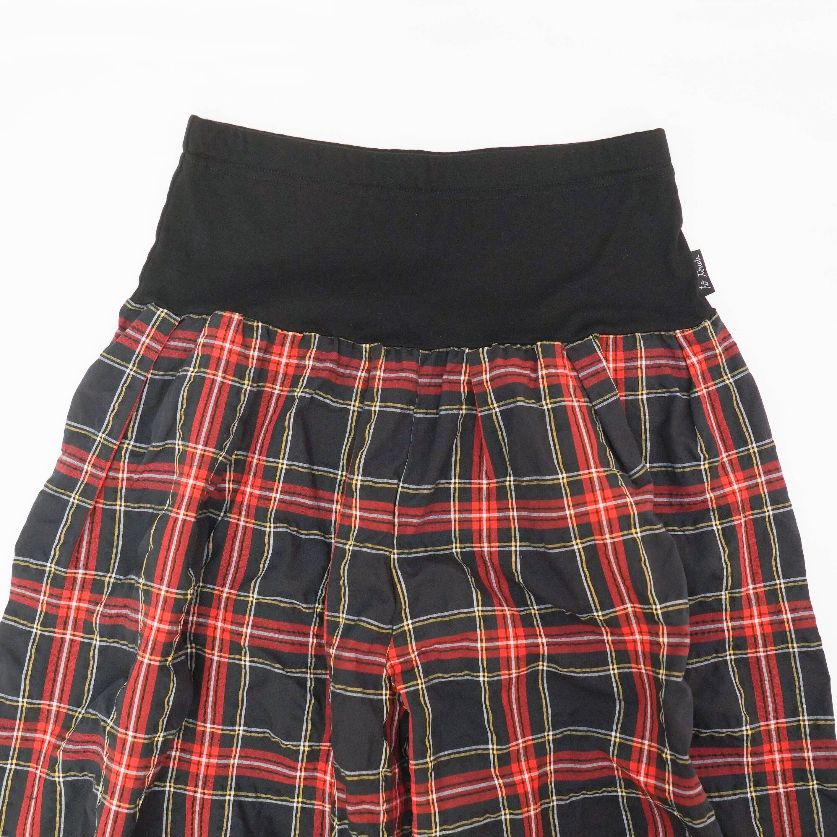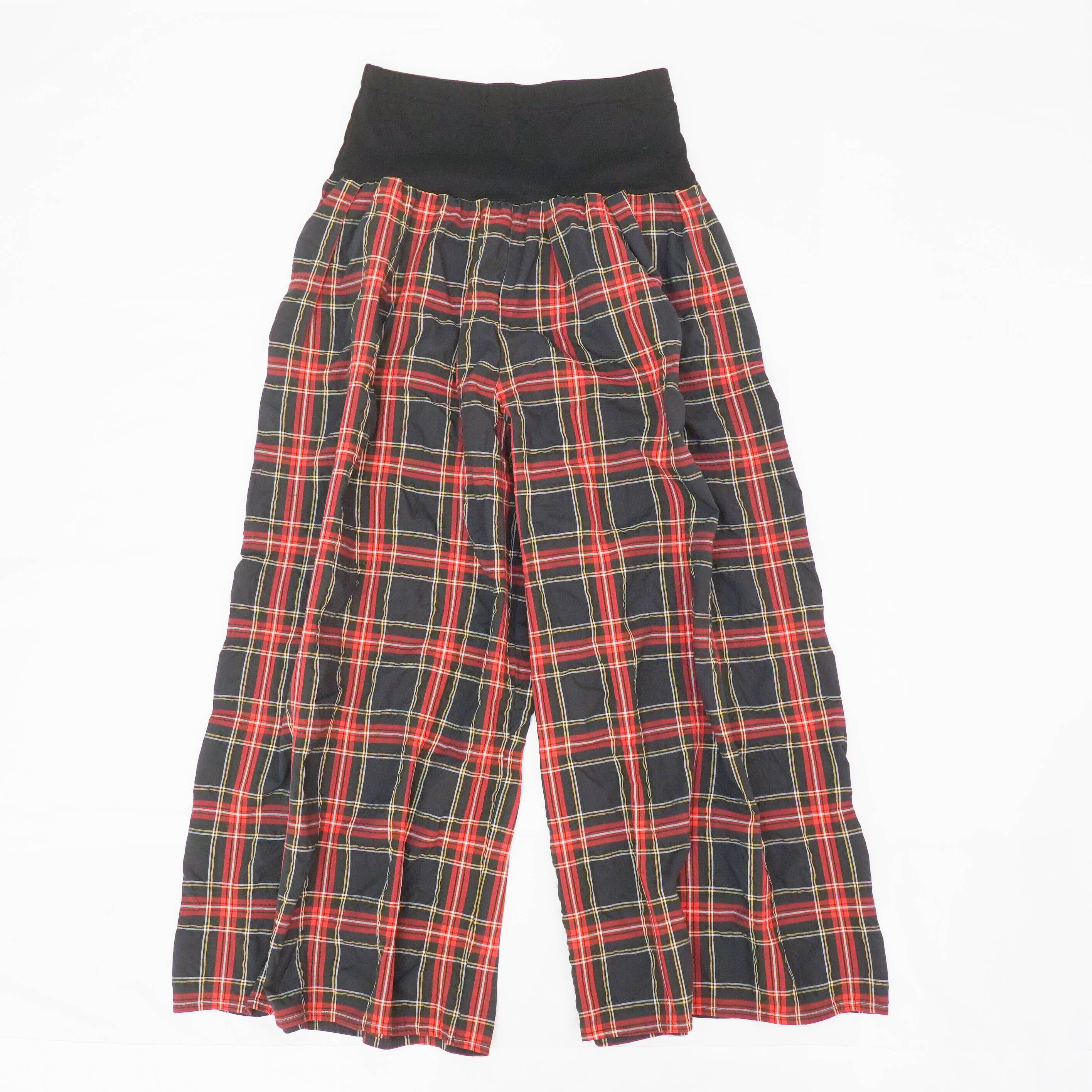 コットンとポリエステルの収縮さと加工による凹凸感を出させた素材。晩夏にちょうど良い、軽やかな質感です。ウエストにリブニットを使用し、ウェーブタータンと組み合わせた表情のあるキュロット。股上が深いので、上げ下げして丈調節もできます。