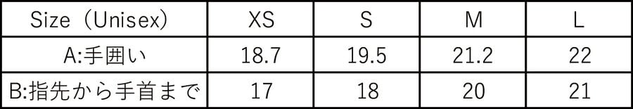 ※「B:指先から手首まで」の数値を優先されることをお勧めいたします。