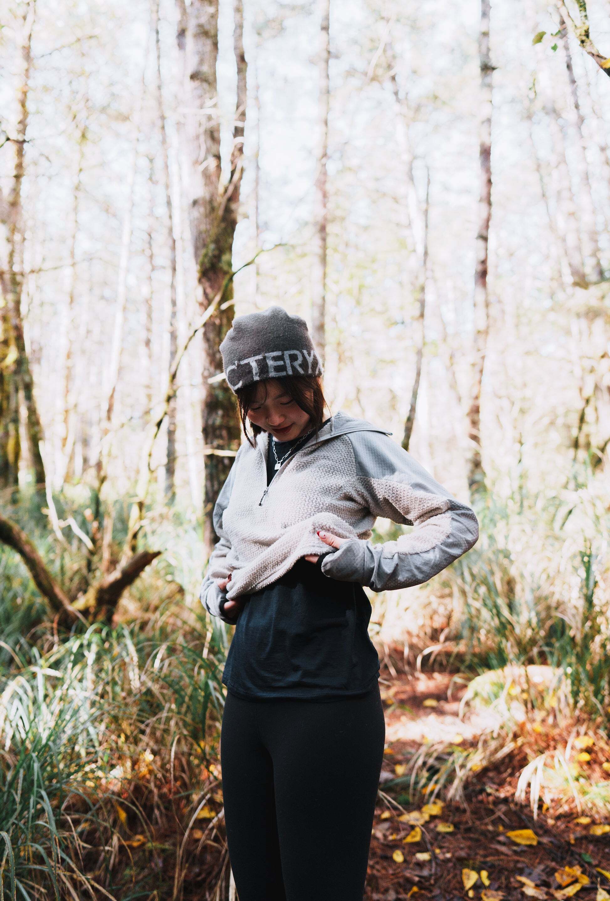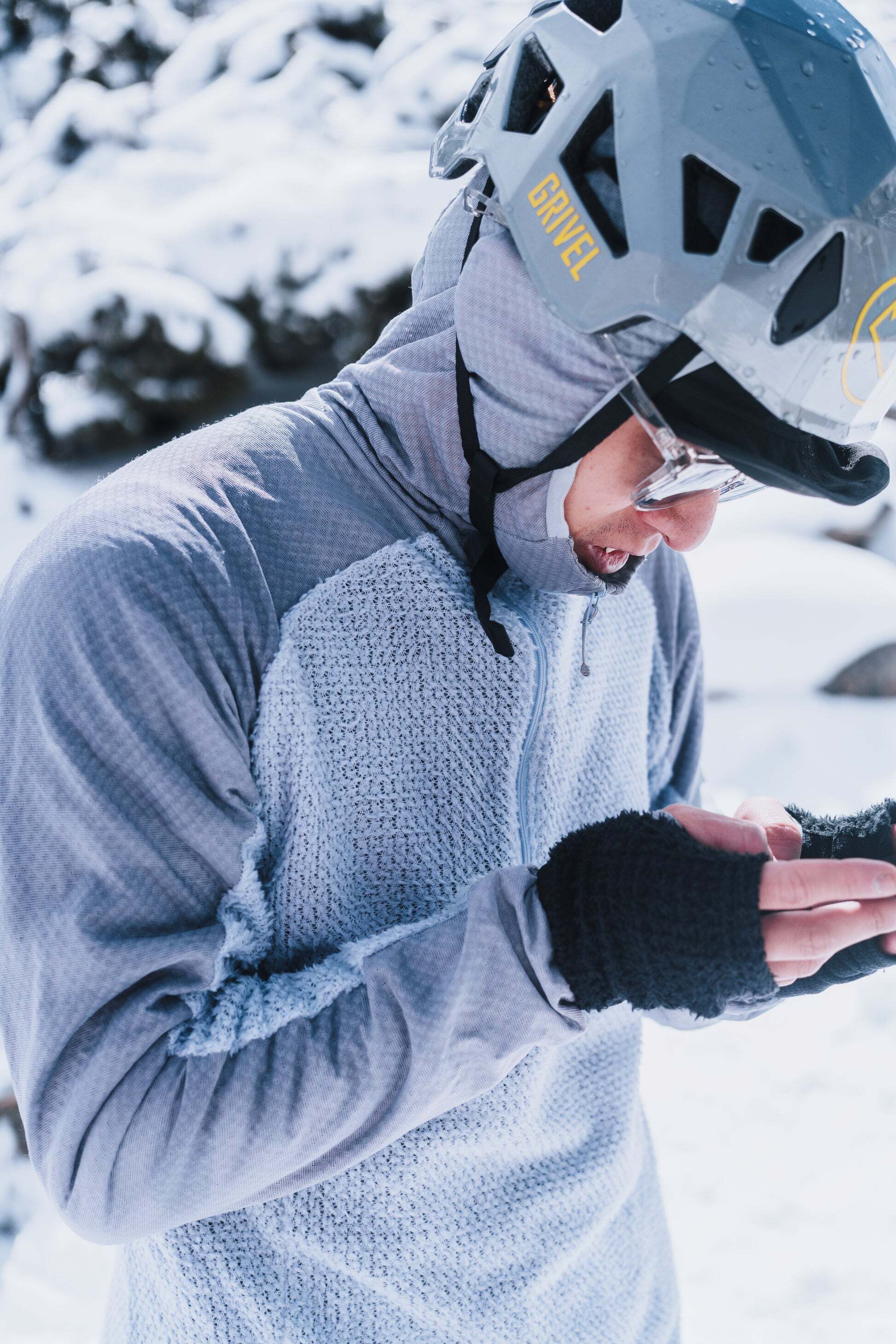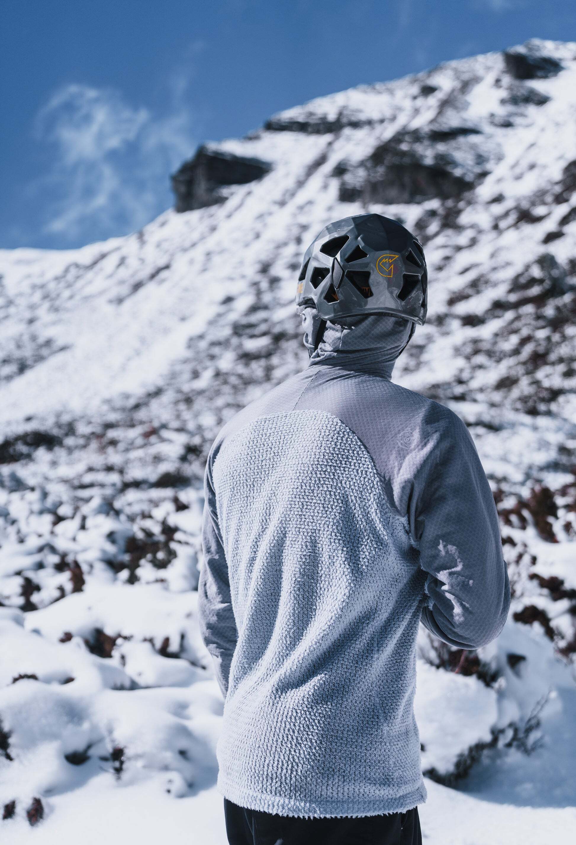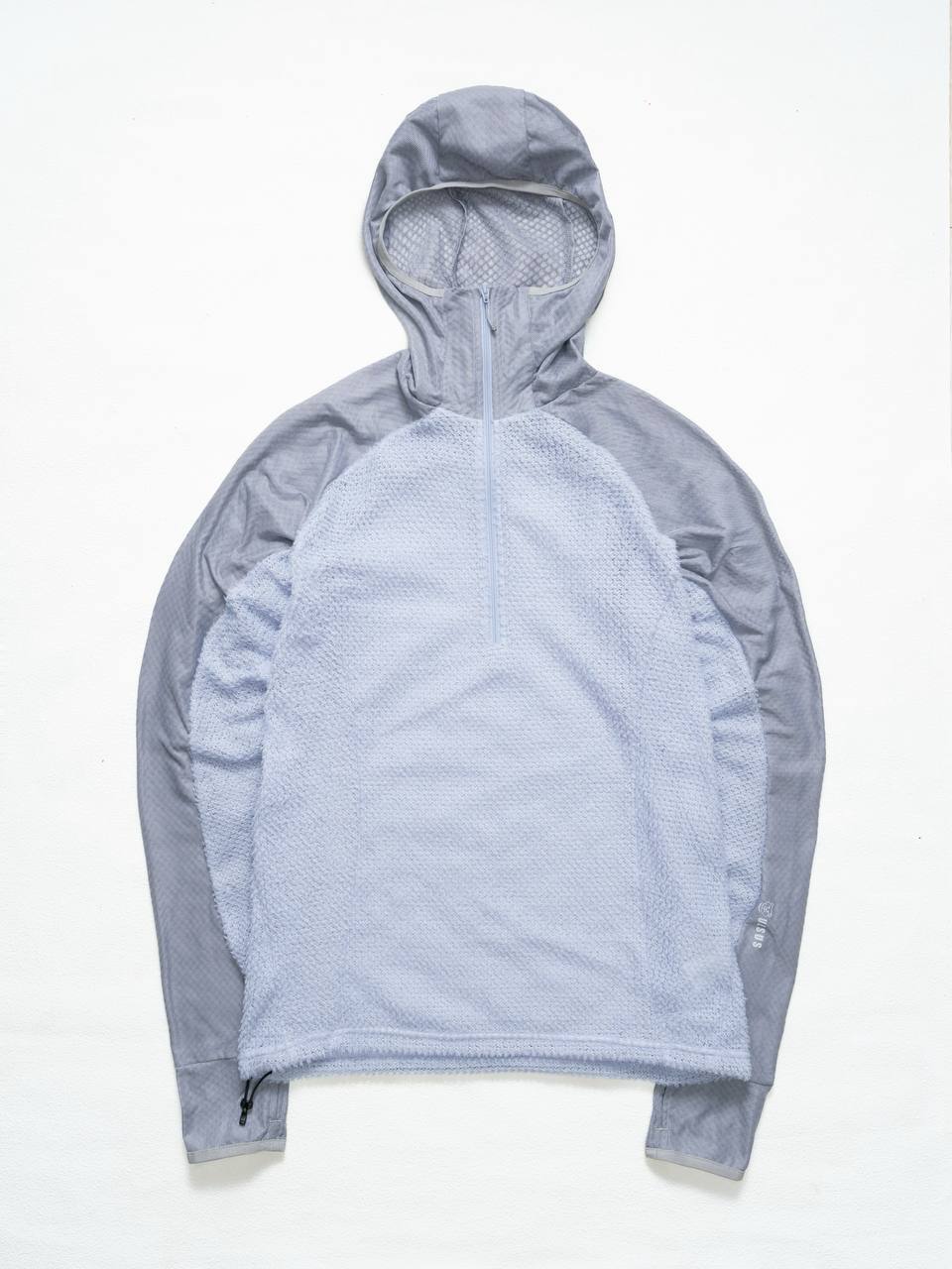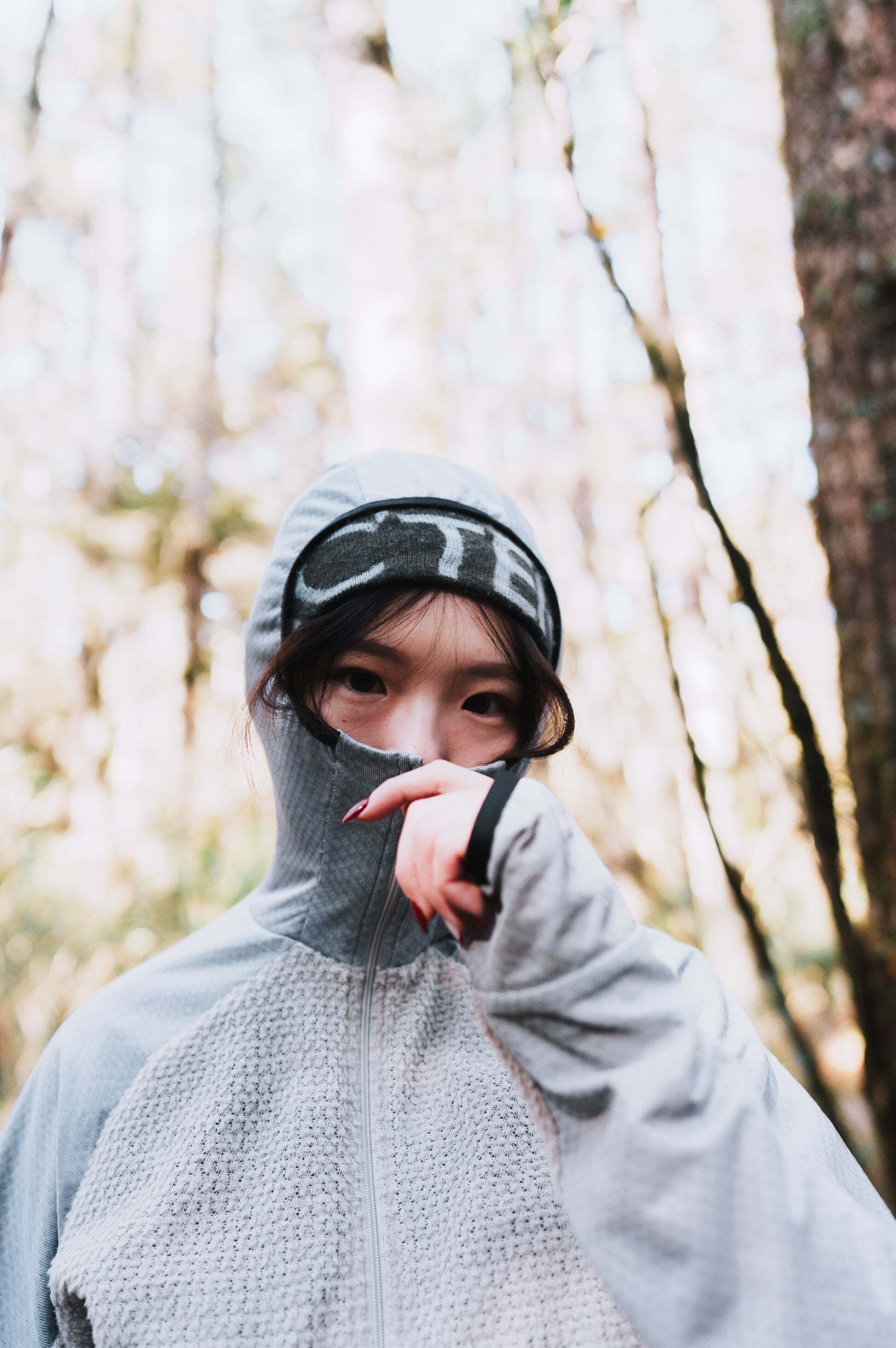 低温時にはフードを被りドローコードを締めることで、鼻まで覆う事ができますが、呼吸が驚くほど気持ちいいです。