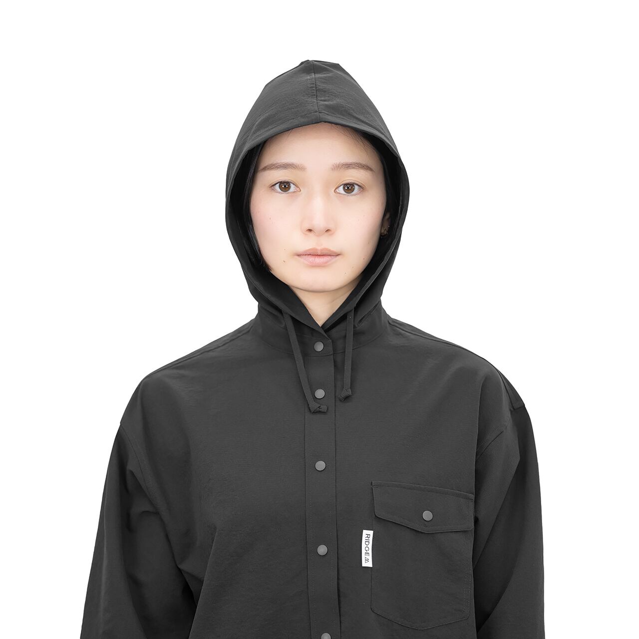 フードのデザインにもこだわりました。テクニカルすぎず、ちょうど良いシンプルさに抑えました。頭にフィットしやすいように立体的なデザインにしようか…フード口にはゴムコードとコードストッパーをつけようか…とか色々考えましたが敢えて簡素なデザインのフードにしました。