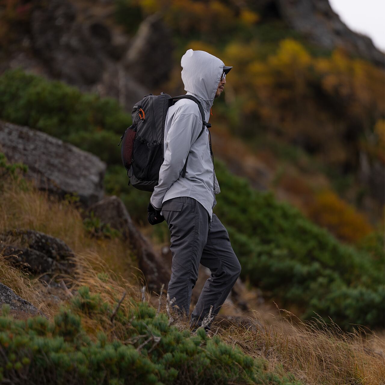 強い風が吹いたり、小雨がパラついたり、日差しがギラギラしたり。そんな時にさっとフードをかぶれば安心感がグッと増します。これだけで一枚持っててよかったと思えるはずです。ハイキングから普段使いまで、あらゆるシーンで活躍すると思います。