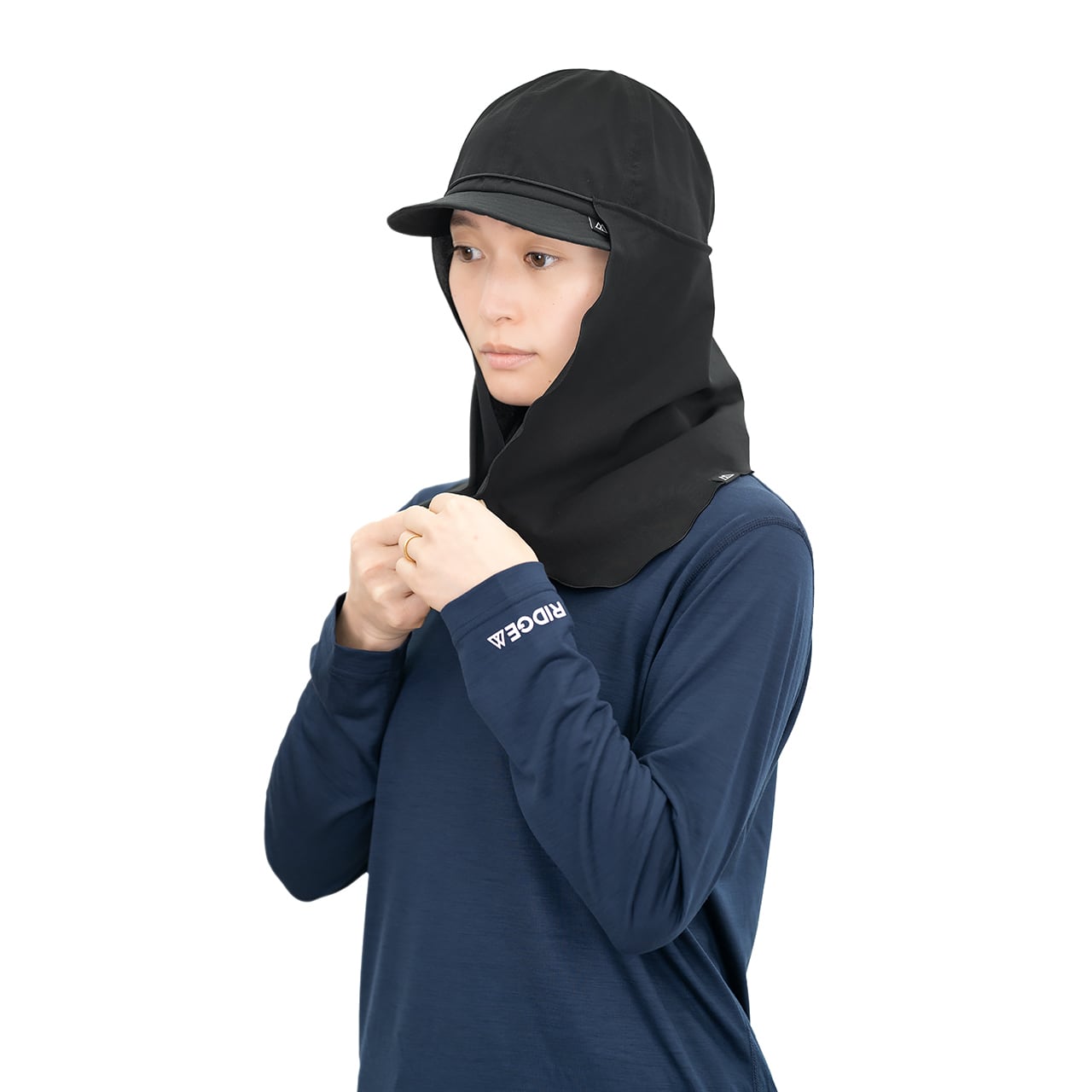 ただし、うなじや耳をしっかりと覆うデザインのため、風を受ける面積が広くなり、強風時には生地がバタつくことがあります。この点については、快適性や日差し対策の効果を重視しつつ、軽量性と保護性のバランスを追求した結果としての特性です。