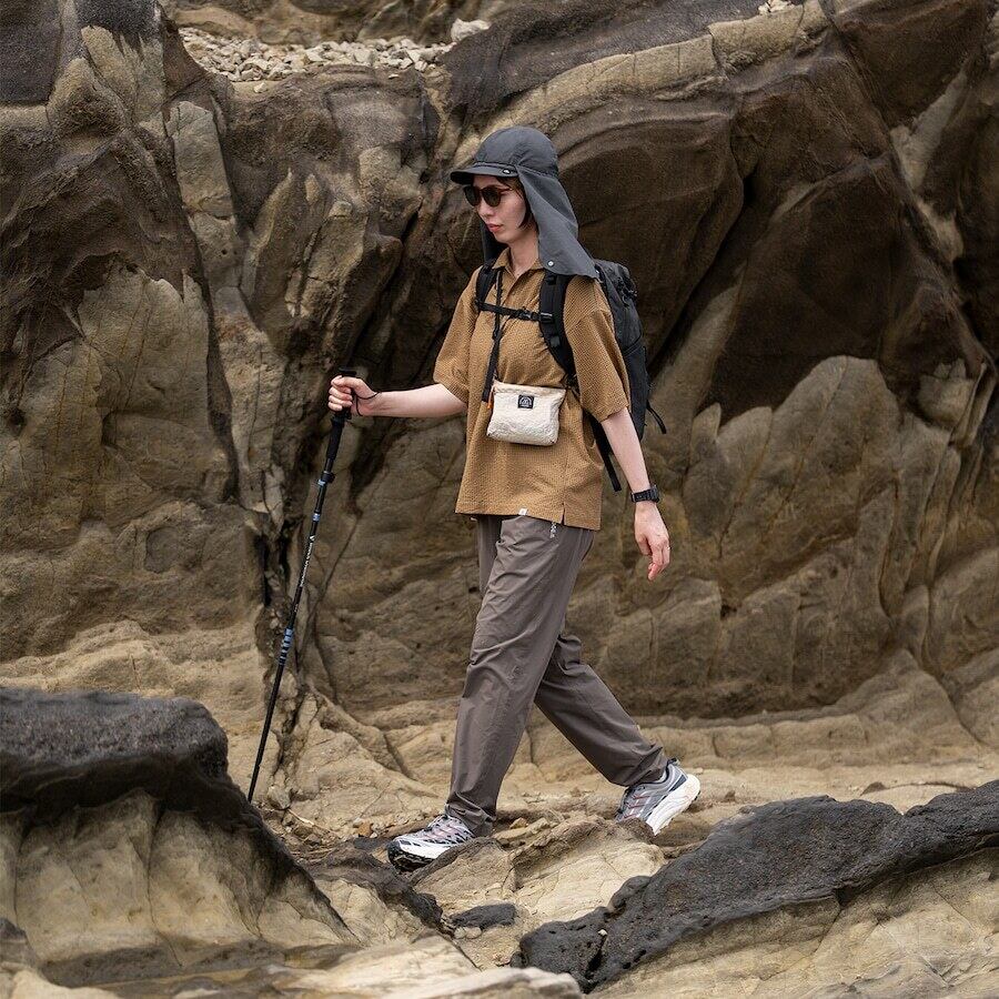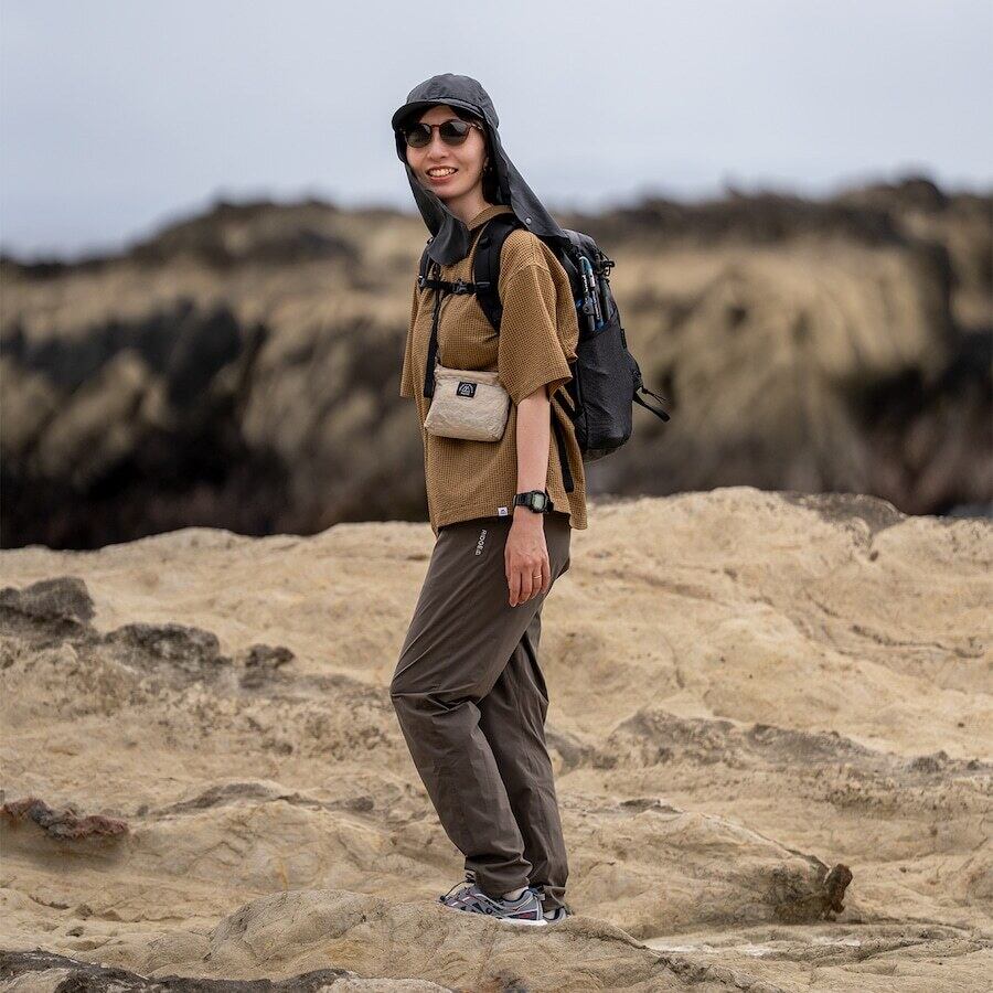 ストレッチ性に優れているため、あらゆる動きに柔軟に対応し、着用時のストレスを軽減します。ハイキングでの急な動きや、日常生活のアクティブなシーンでも、身体の動きに自然にフィットし、快適さを保ちます。さらに、微細な空気孔による高い通気性が、長時間の着用でもムレを抑え、涼しさをキープします。夏場や運動量が多いシーンでも、快適に過ごすことができます。