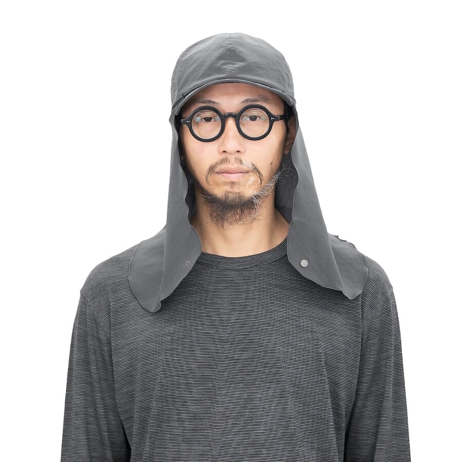 とはいえ、真夏の直射日光のもとでは、キャップだけではどうしてもカバーしきれない領域が生まれます。首の後ろや耳の上にジリジリと日差しが当たるあの感覚を、きっと誰しもが一度は経験しているはずです。そんな「あと少しの安心」を補うために、『Sunshade』は誕生しました。キャップ派の自由を守りつつ、必要なプロテクションをプラスするそのために、形状から素材、取り付け方法に至るまで細部にこだわりデザインしました。