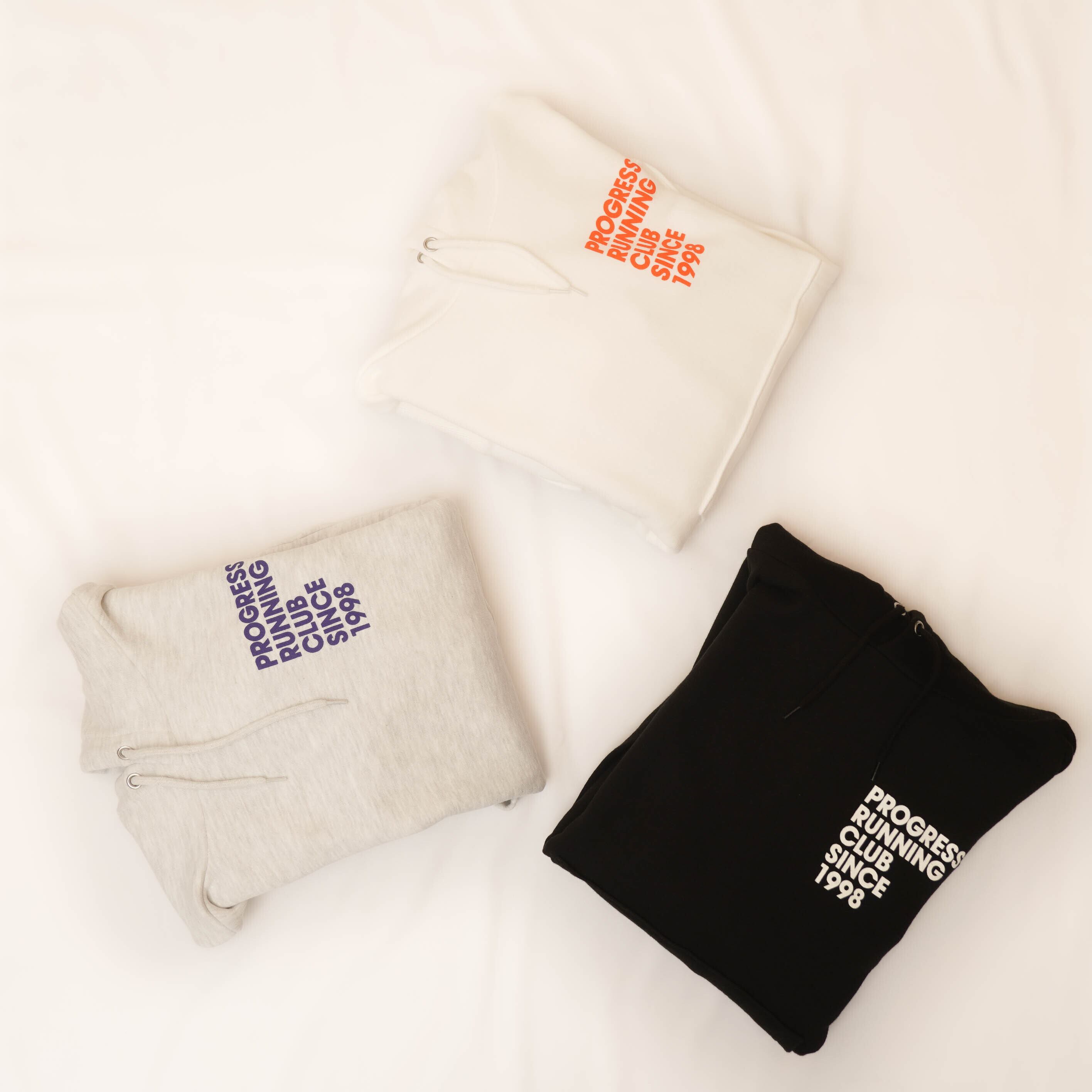 レトロなデザインで定評のある "プログレス ランニングクラブ"のロゴフーディ。